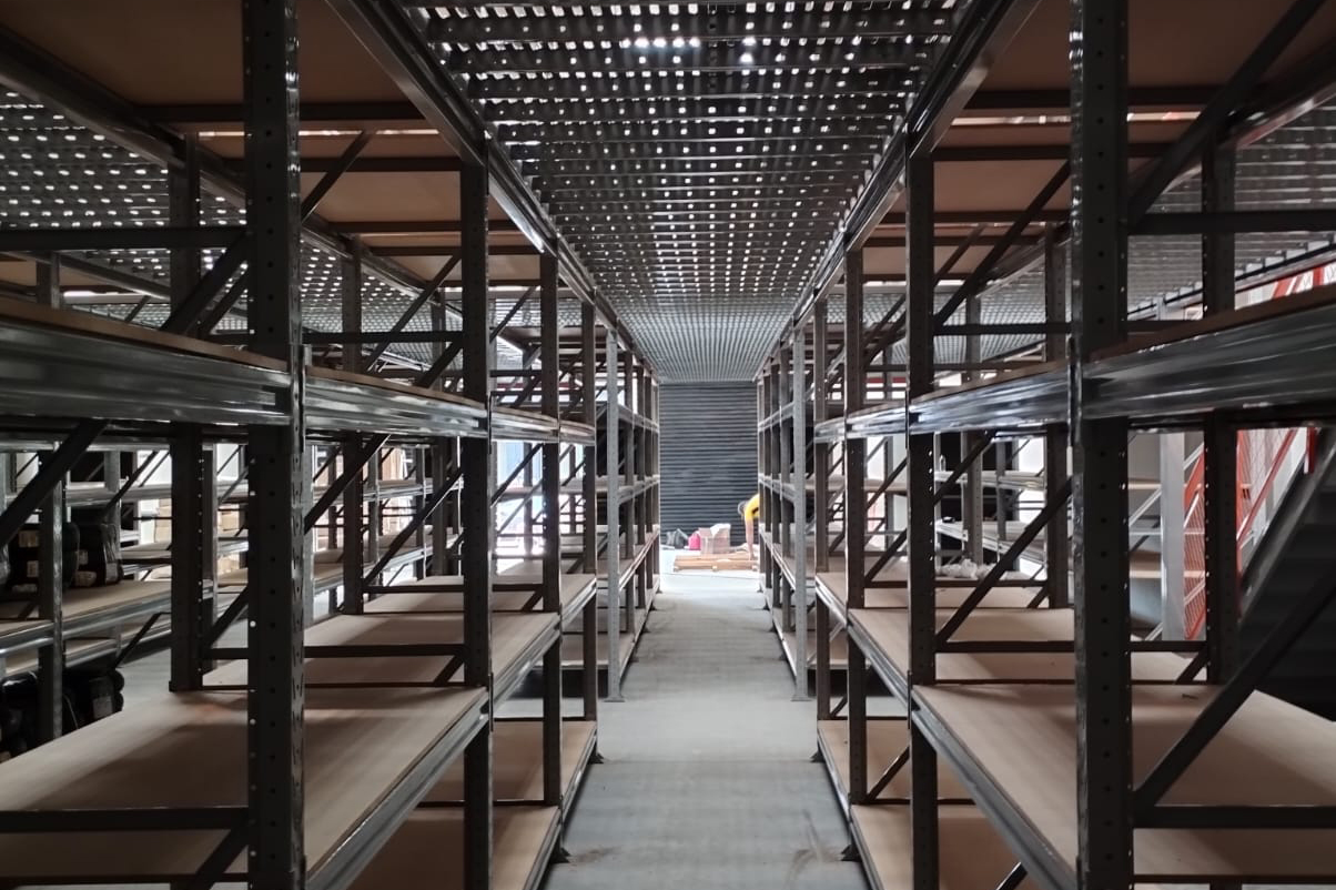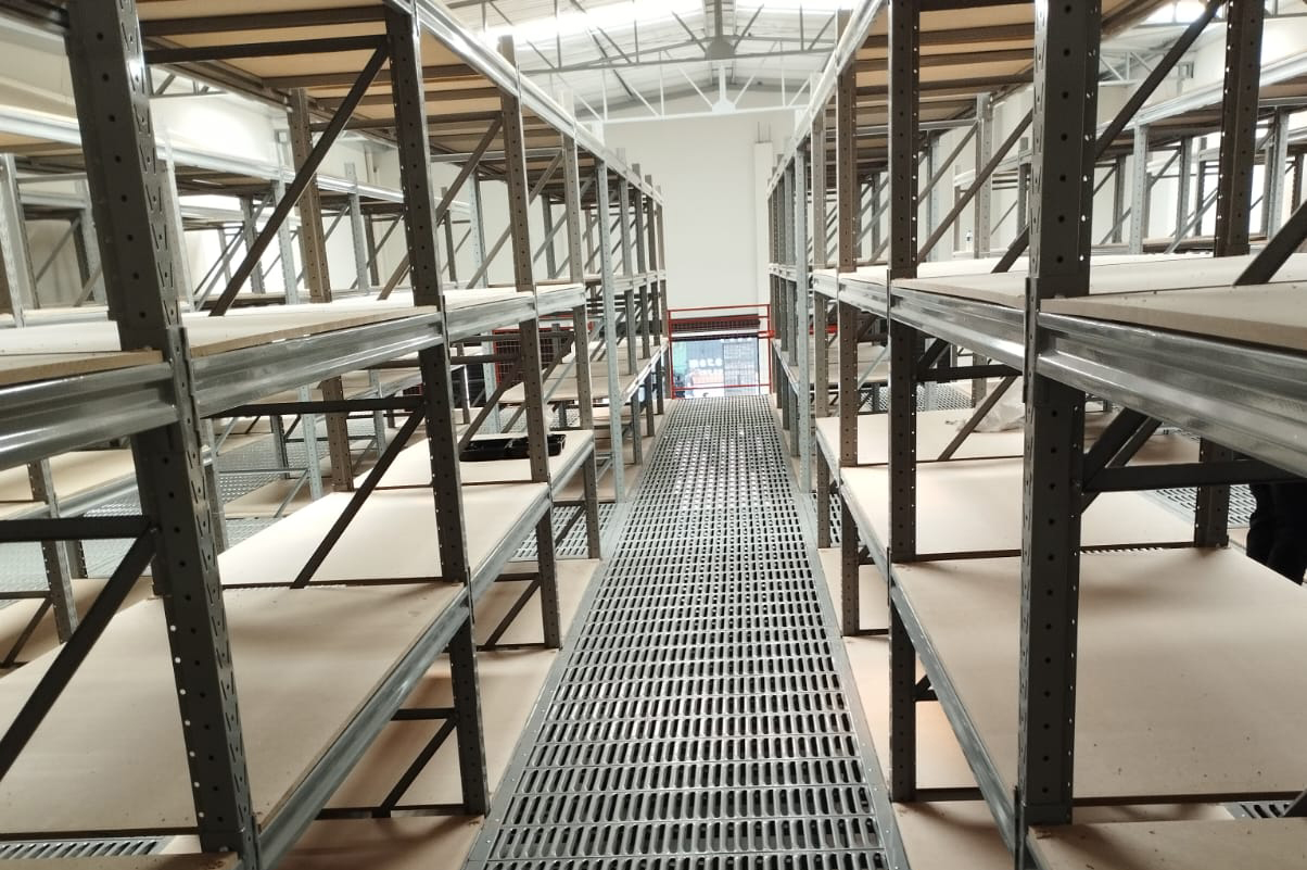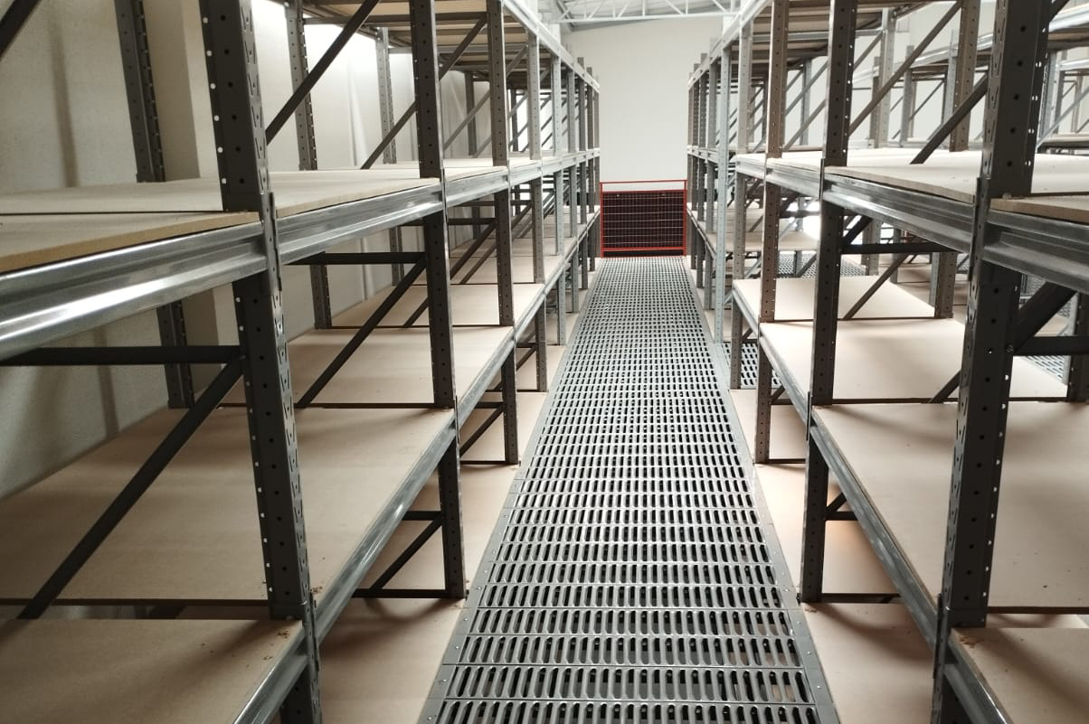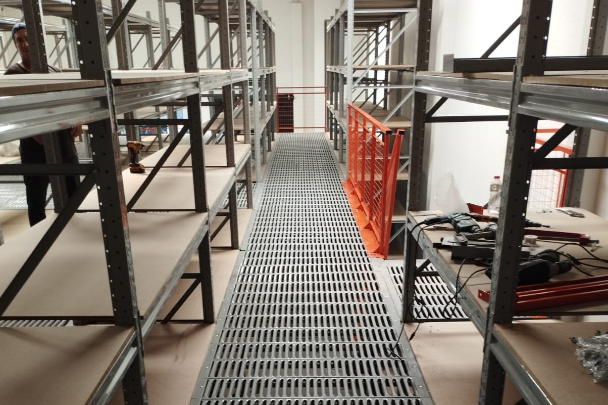 Produto fabricado sob encomenda, obedecendo à área disponível, favorecendo a verticalização e duplicação da área de armazenagem sem alteração predial. Os Mezaninos Metálicos desmontáveis Duaço são oferecidos com capacidade de carga distribuída de acordo com a necessidade, podendo ser fabricada em placas lisas separando ambiente, ou em placas vazadas proporcionando maior luminosidade e circulação do ar.